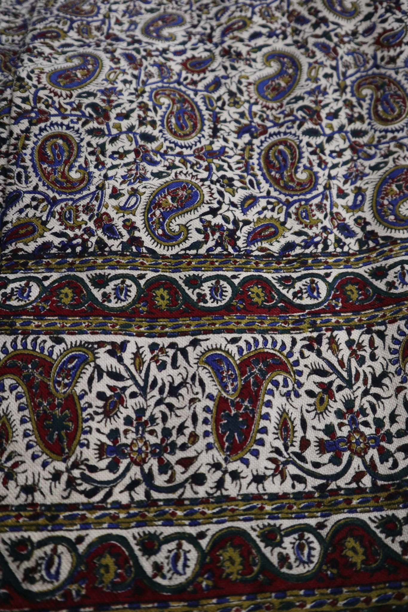 Obrus jest ręczny stemplowany za pomocą pomocy barwników.