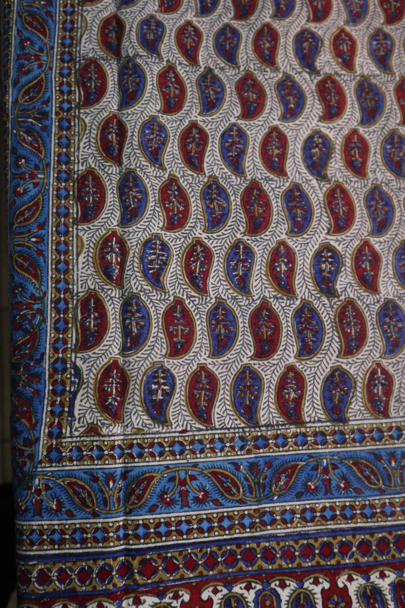 Obrus jest ręczny stemplowany za pomocą barwników.