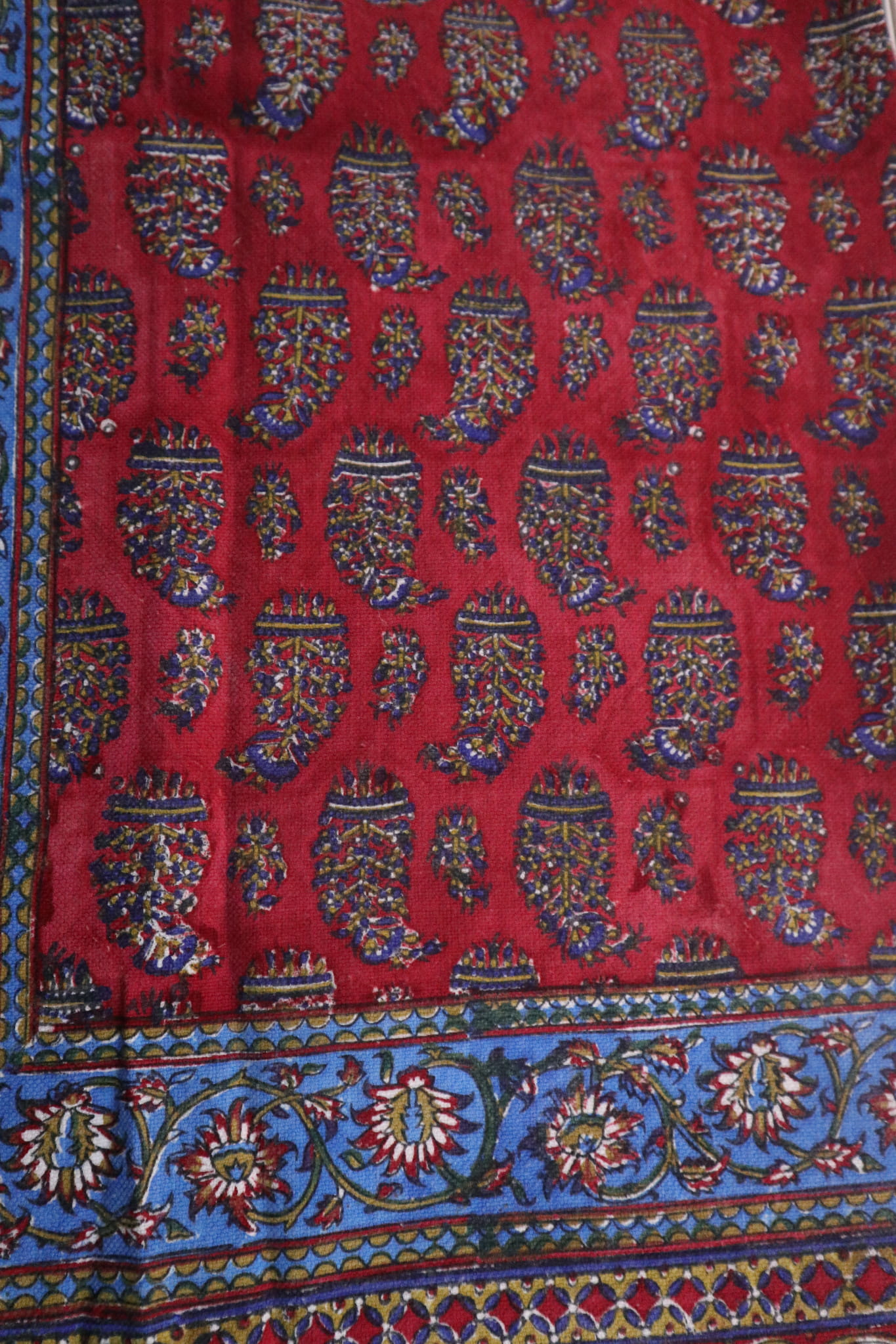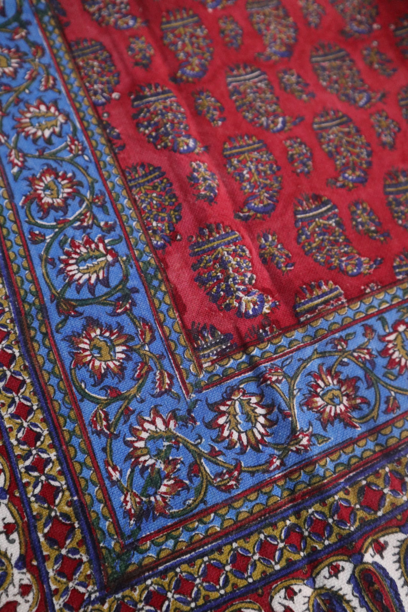 Obrus jest ręczny stemplowany za pomocą barwników.
