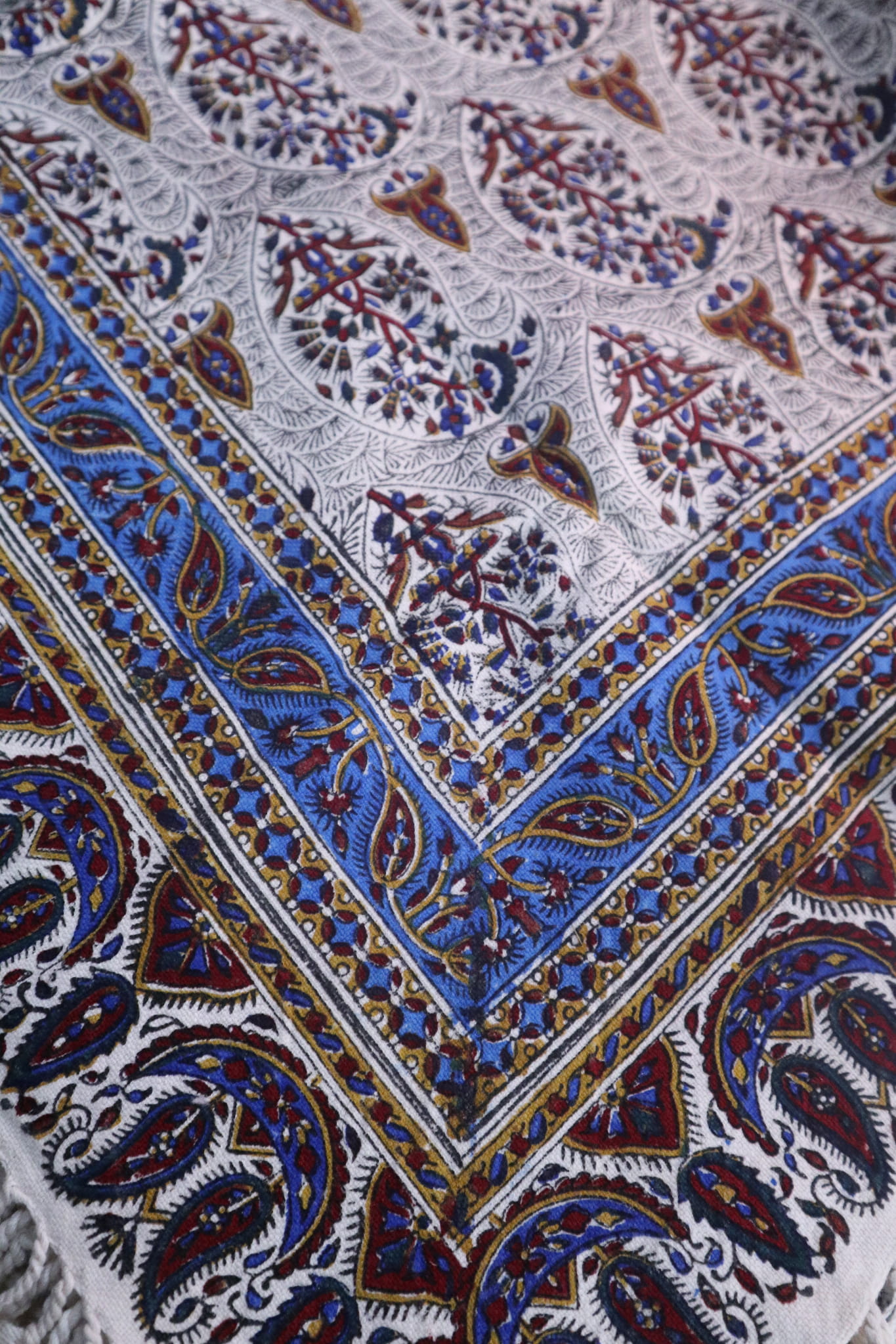 Obrus jest ręczny stemplowany za pomocą barwników.