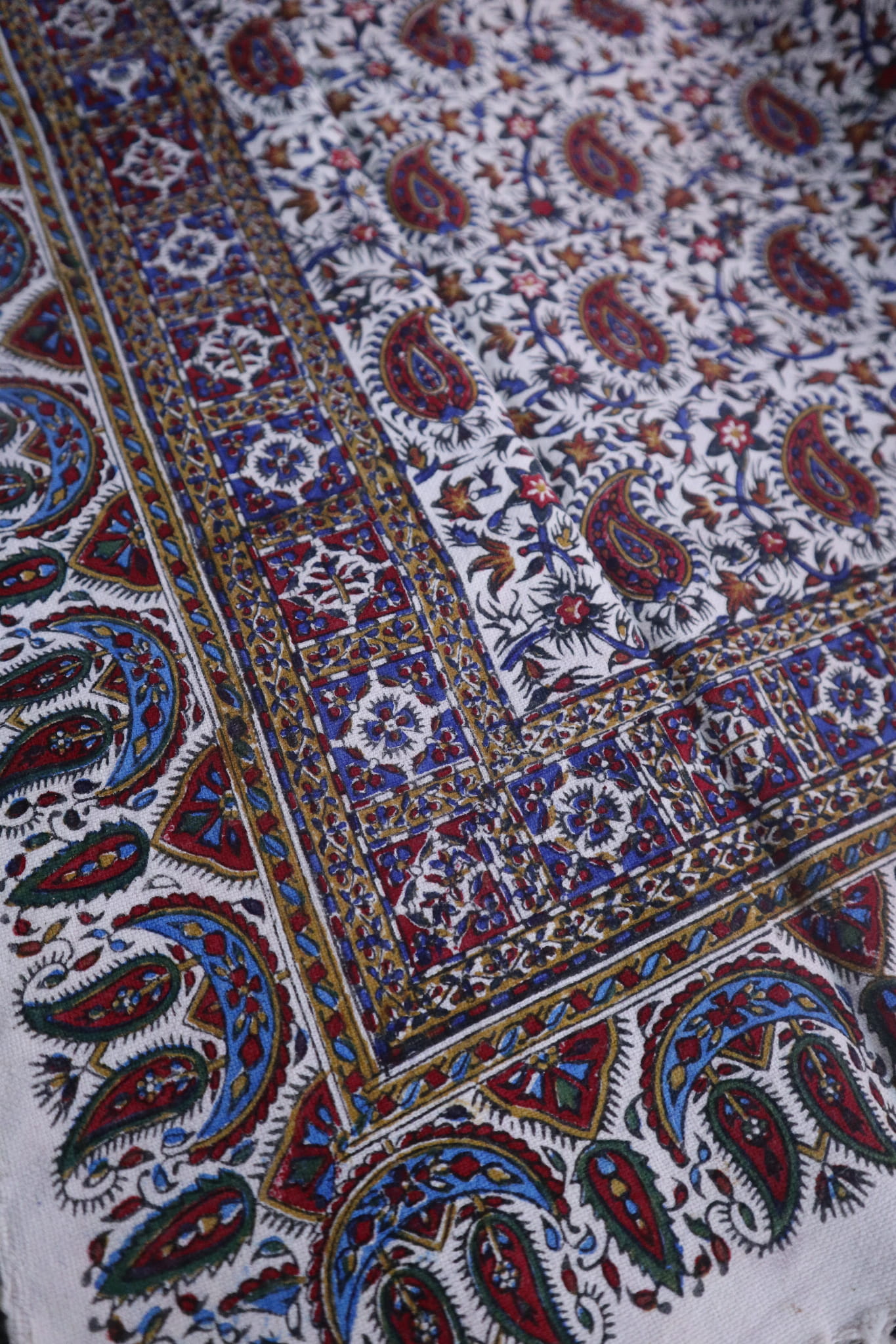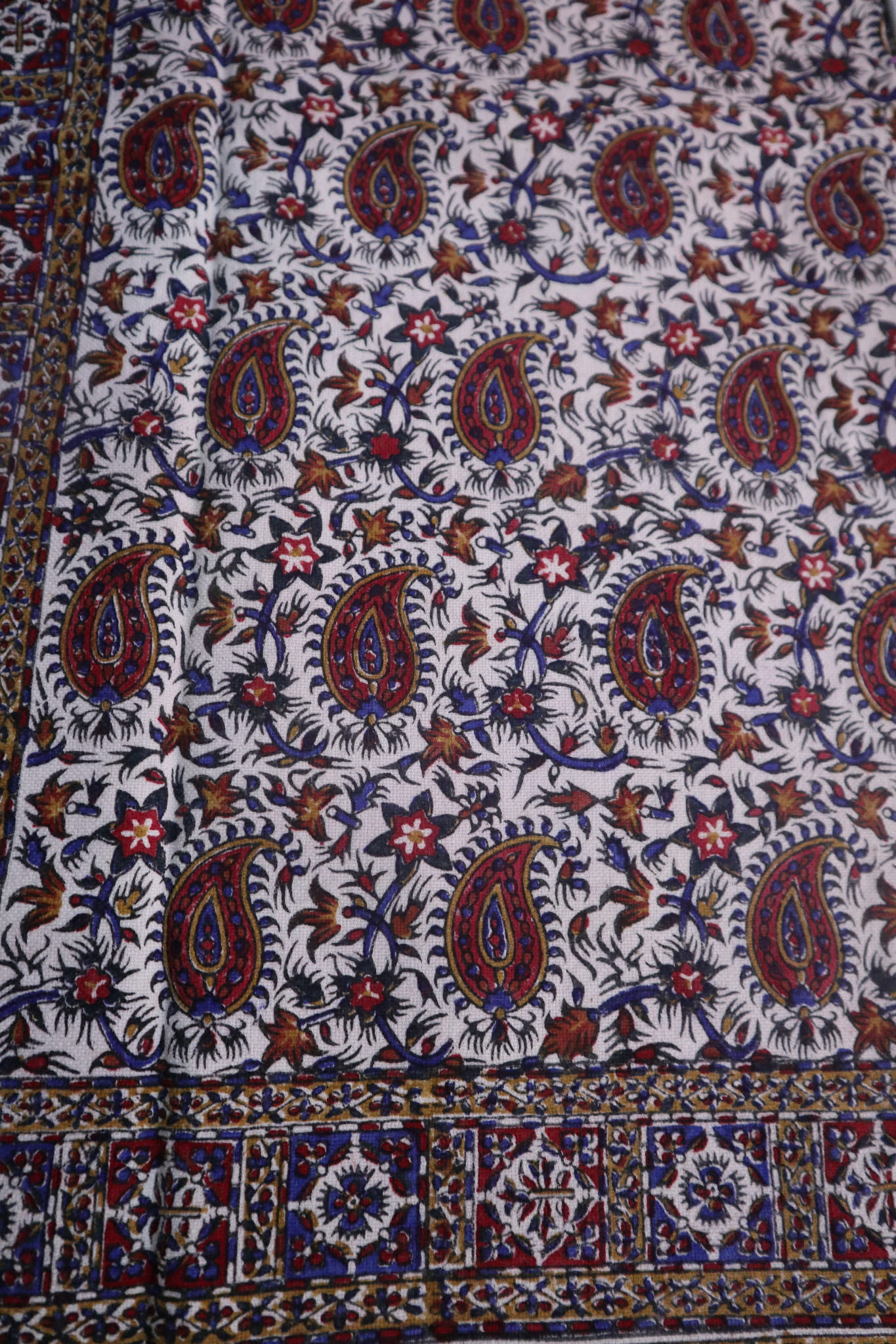 Obrus jest ręczny stemplowany za pomocą barwników.
