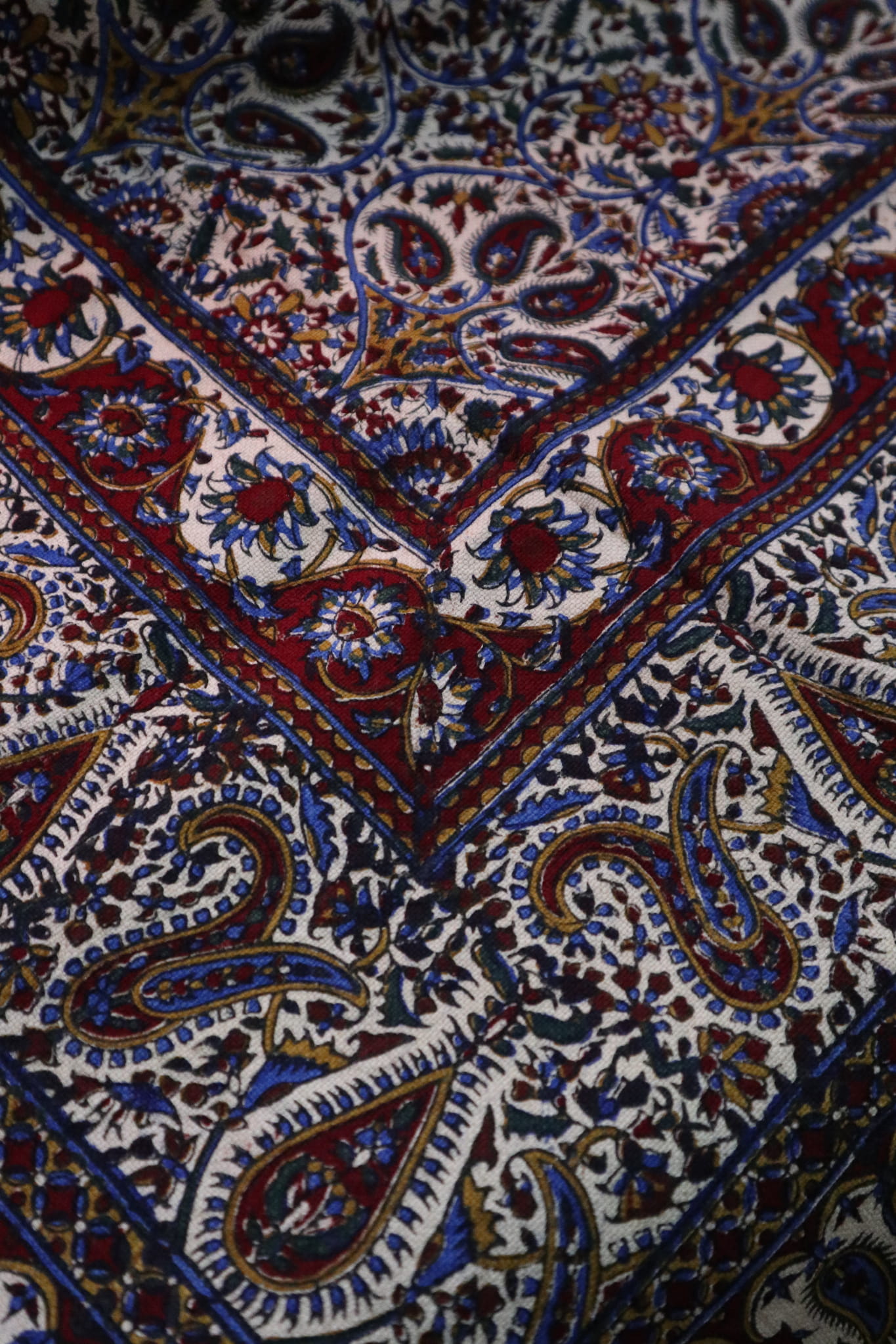 Obrus jest ręczny stemplowany za pomocą pomocy barwników.