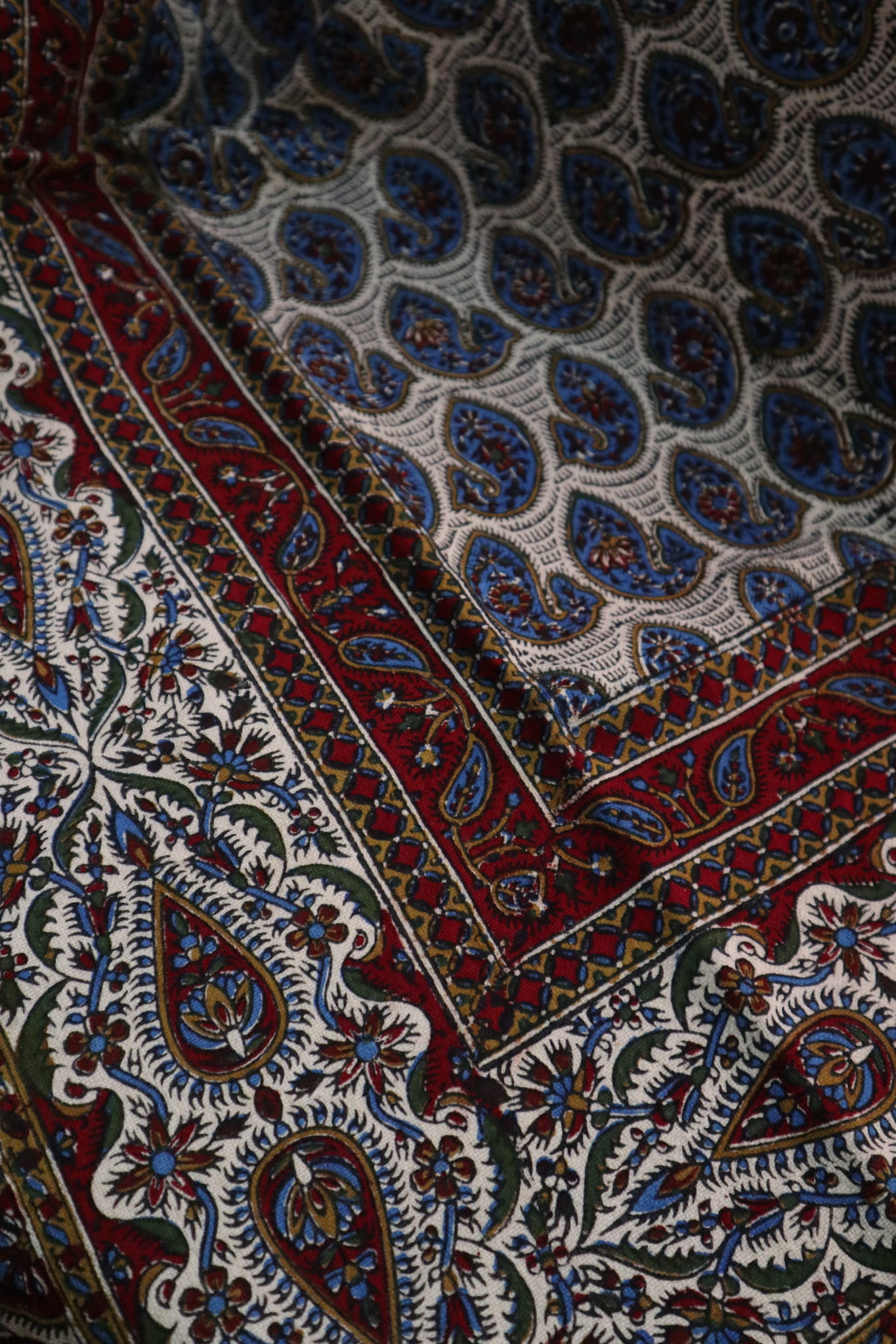 Obrus jest ręczny stemplowany za pomocą pomocy barwników.