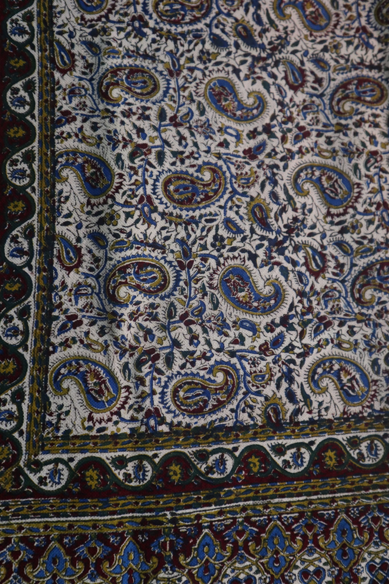 Obrus jest ręczny stemplowany za pomocą barwników.