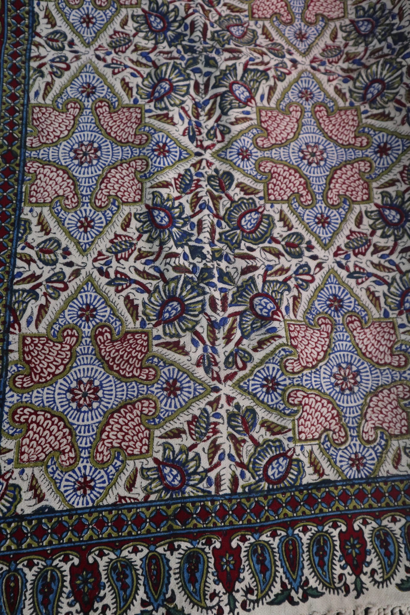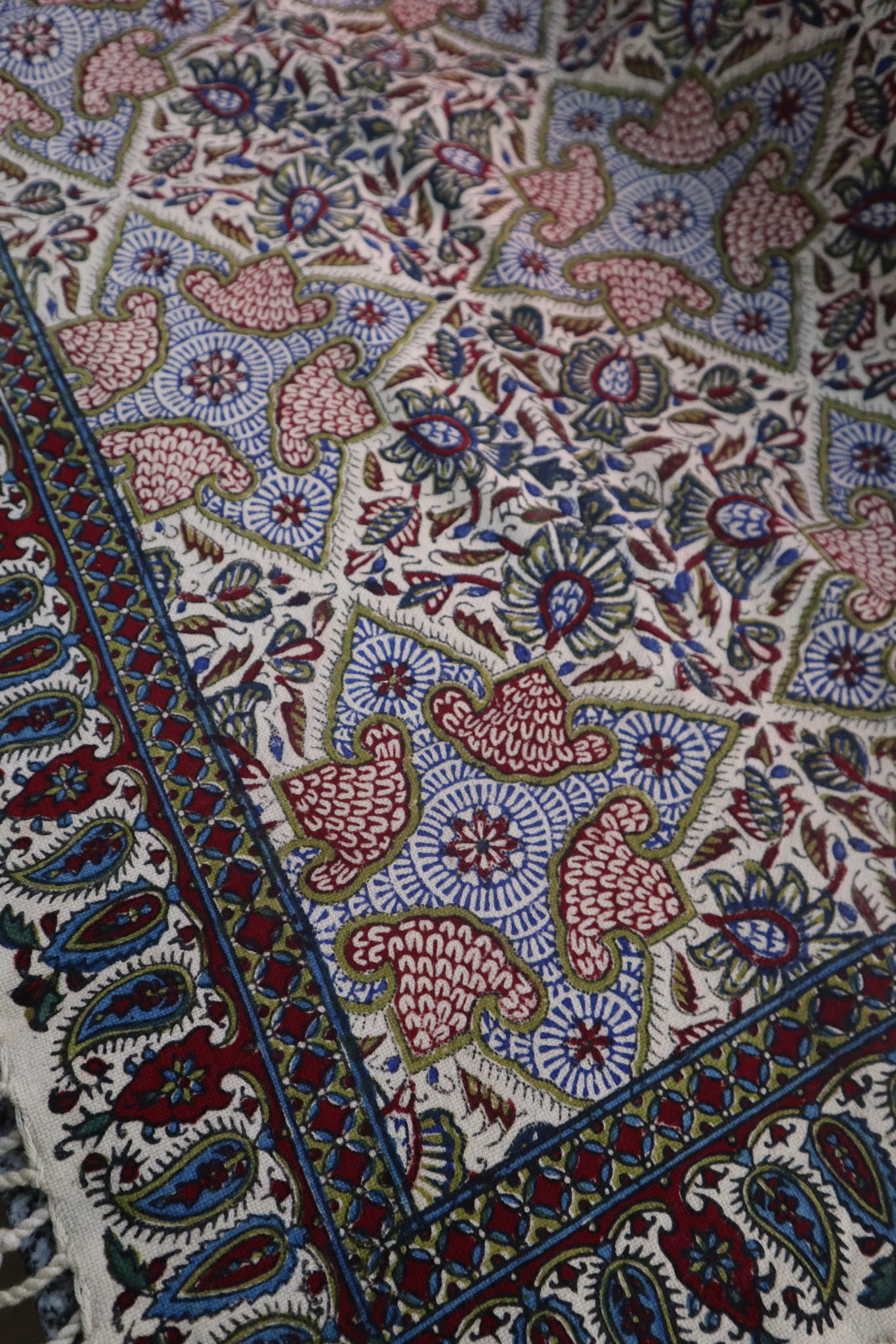 Obrus jest ręczny stemplowany za pomocą barwników.
